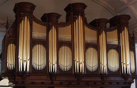 The western gallery is dominated by the organ-case. Of this the three central towers with the "flats" between are the original case installed by Gerald Smith, nephew of the builder of the St. Pauls Cathedral organ, Bernard Smith. It was completed in 1725, contained 1514 pipes, and had three manuals, Great, Choir and Swell. The cost was £500. In 1761 the Parish Vestry contracted with John Snetzler for a new organ to be fitted into the old case, for which he was to have £300 and the old pipes. A further rebuilding was undertaken by J.C. Bishop in the early 19th century.